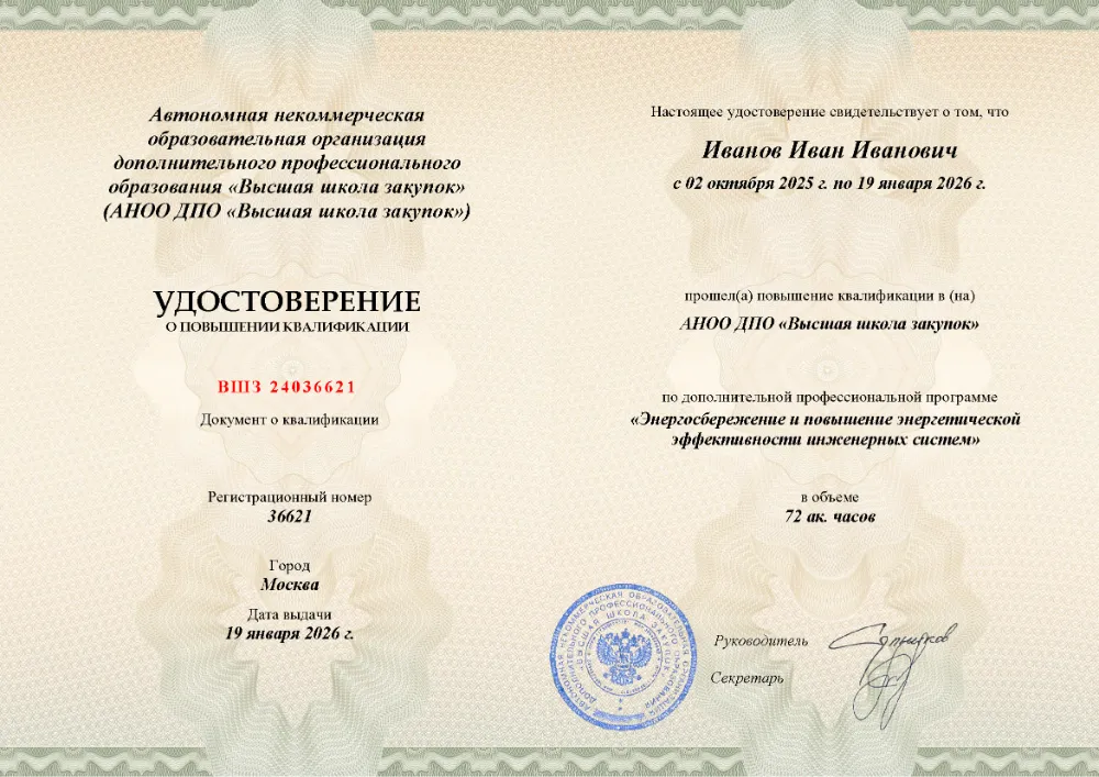 Программа повышения квалификации (72 часа) по энергосбережению и повышению эффективности инженерных систем в в Вологде. Освойте современные методы аудита, энергоменеджмент, инструменты оптимизации и цифровые технологии для снижения затрат в зданиях и на предприятиях.