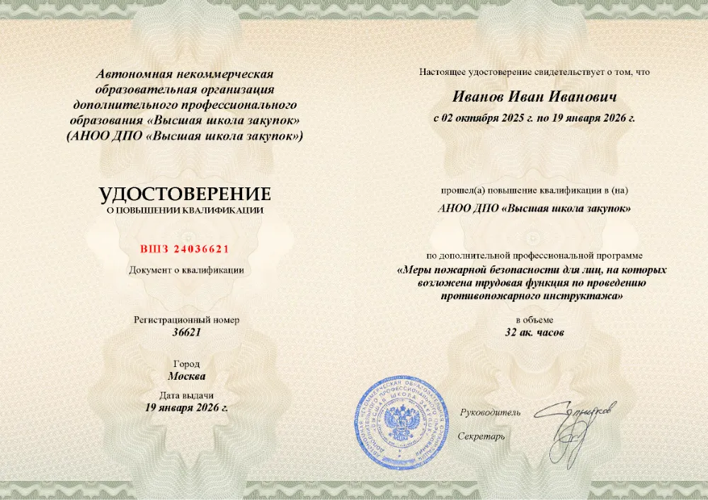 Повышение квалификации, 32 академических часа, 3 модуля: нормативно-правовые основы и обязанности инструктора, содержание и методика проведения противопожарных инструктажей, практические знания и навыки для эффективного обучения персонала. Онлайн-обучение в в Вологде с итоговой аттестацией.