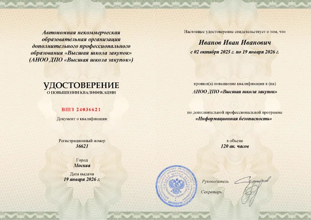 Повышение квалификации, 72 академических часа, 8 модулей: организационно-правовые основы и технические средства защиты информации, меры против утечек и несанкционированного доступа, аттестация объектов информатизации и контроль состояния защиты. Онлайн-обучение в в Вологде с итоговой аттестацией.