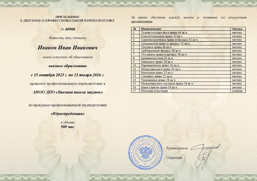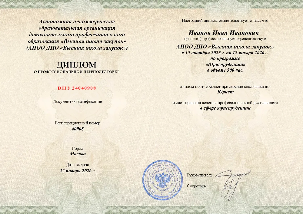 Профессиональная переподготовка, 500 академических часов, 16 модулей: теория государства и права, конституционное, гражданское, уголовное и трудовое право, арбитражный и административный процесс, налоговое, земельное, таможенное и международное право. Онлайн-обучение в в Вологде с итоговой аттестацией.