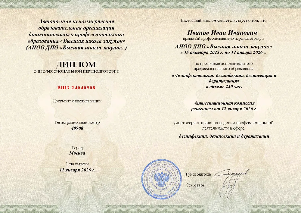 Профессиональная переподготовка на 250 часов. Изучите организацию санитарной службы, все виды обеззараживания (дезинфекция, дезинсекция, дератизация), стерилизацию и правовые нормы. Программа включает практическую работу для отработки навыков. Онлайн-обучение в в Вологде с итоговой аттестацией.