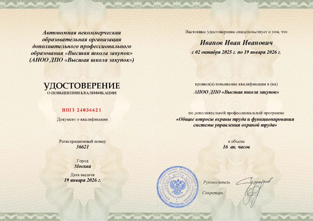 Повышение квалификации, 16 академических часов, 4 модуля: правовые основы и организация системы охраны труда, управление профессиональными рисками и оценка условий труда, обеспечение безопасных условий и социальные гарантии работникам, расследование несчастных случаев и внутренний аудит системы. Онлайн-обучение в в Вологде с итоговой аттестацией.